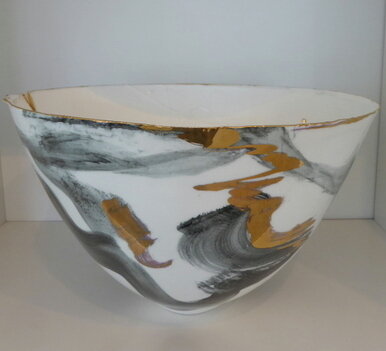 Each piece is unique - a characteristic that we are not unfamiliar with at Artform. BUT, with Anne, while she is in a phase of Ice Bowls, they vary so much - and each one will respond to each individual. Whether more gold, representing the sunlight on the icicles of the Antarctica, or less gold. Wild shown in the torn rim, or smooth like the snow after melting....and the best part is the outcome of her work surprises even her as the artist, such is the element of surprise in each work. ARTFORM