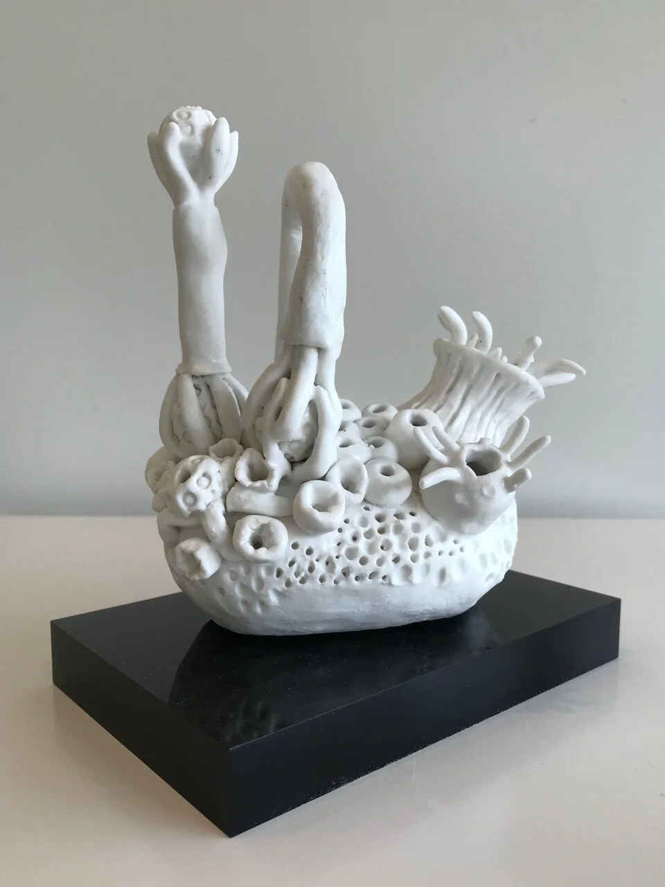 As a figurative ceramic sculptor, I hand build using both coil and slab techniques and construct in a modular way. The formation of identity, particularly during childhood, continues to be my focus. The motivation in my making is to capture and encapsulate those small haemorrhages of the self, the dualities we encounter, which chart our emotional progress through life. I completed a Master of Design at Unitec in 2012.