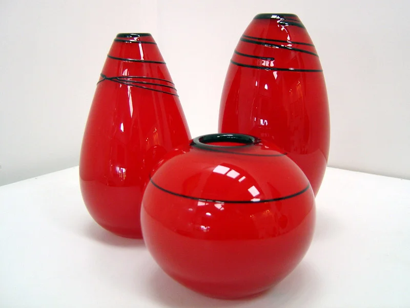 Chris combines his amazing skill of glass-blowing with an astute sense of design, a beautiful affinity for colour and the ability to create balanced shapes. As a glassblower, he is technically very able, handles the Graal technique along with most techniques you throw at him. Combine this with the fact that he is just a jolly nice guy, and you have delight. ARTFORM