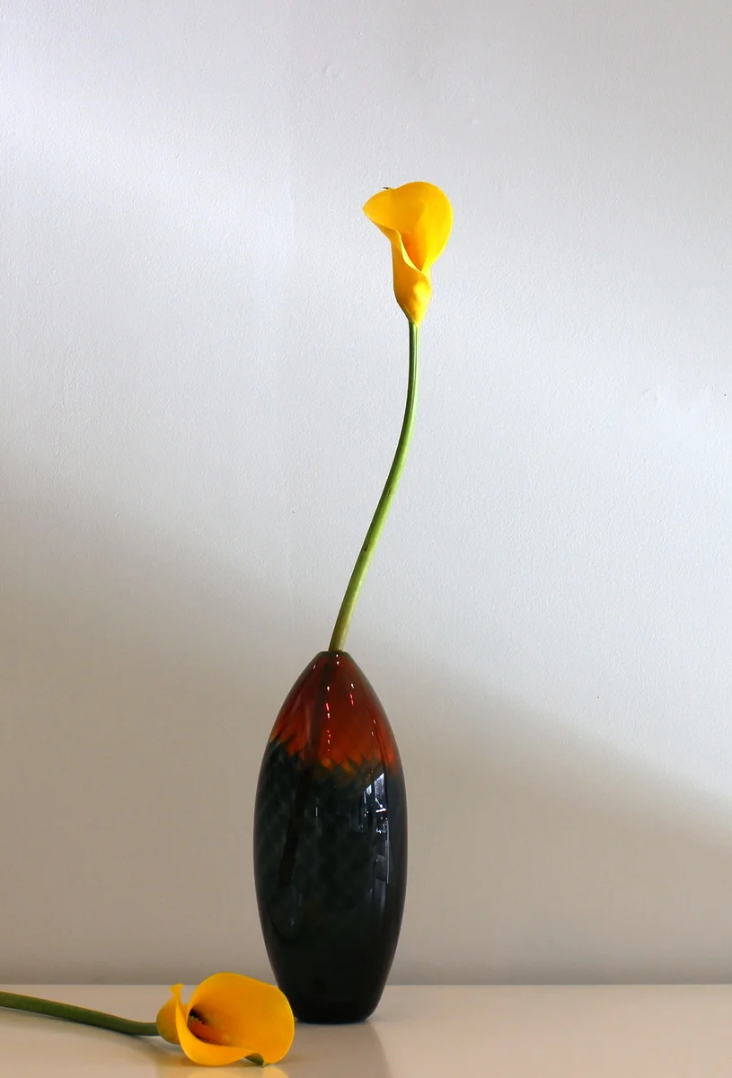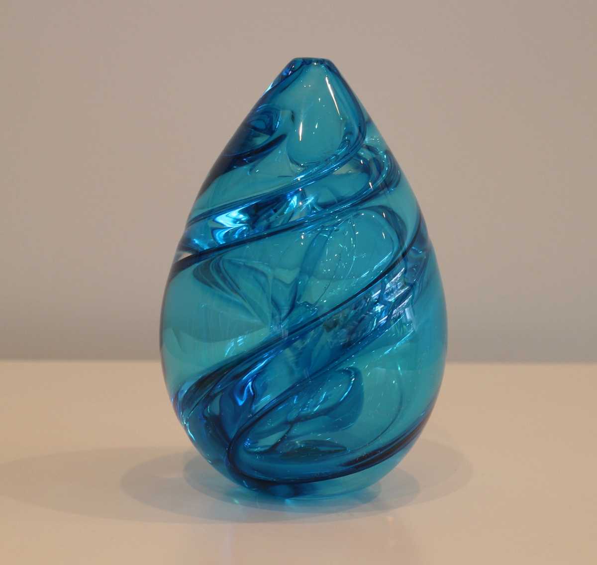 A product of these influences can be seen in Chris Jones' 'Floats' series - influenced in part by the new experiences of New Zealand and eloquently expressed in 'Poetry in the Making' by Ted Hughes: "Your whole being rests lightly on your float, but not drowsily: very alert, so that the least twitch of the float arrives like an electric shock. And you are not only watching the float. You are aware, in a horizon less and slightly mesmerised way, like listening to the double bass in orchestral music, of fish below there in the dark." Chris is currently back 'in the bench' working both for Lava Glass and on his own unique pieces. Artform is proud to be exhibiting and representing Chris Jones.