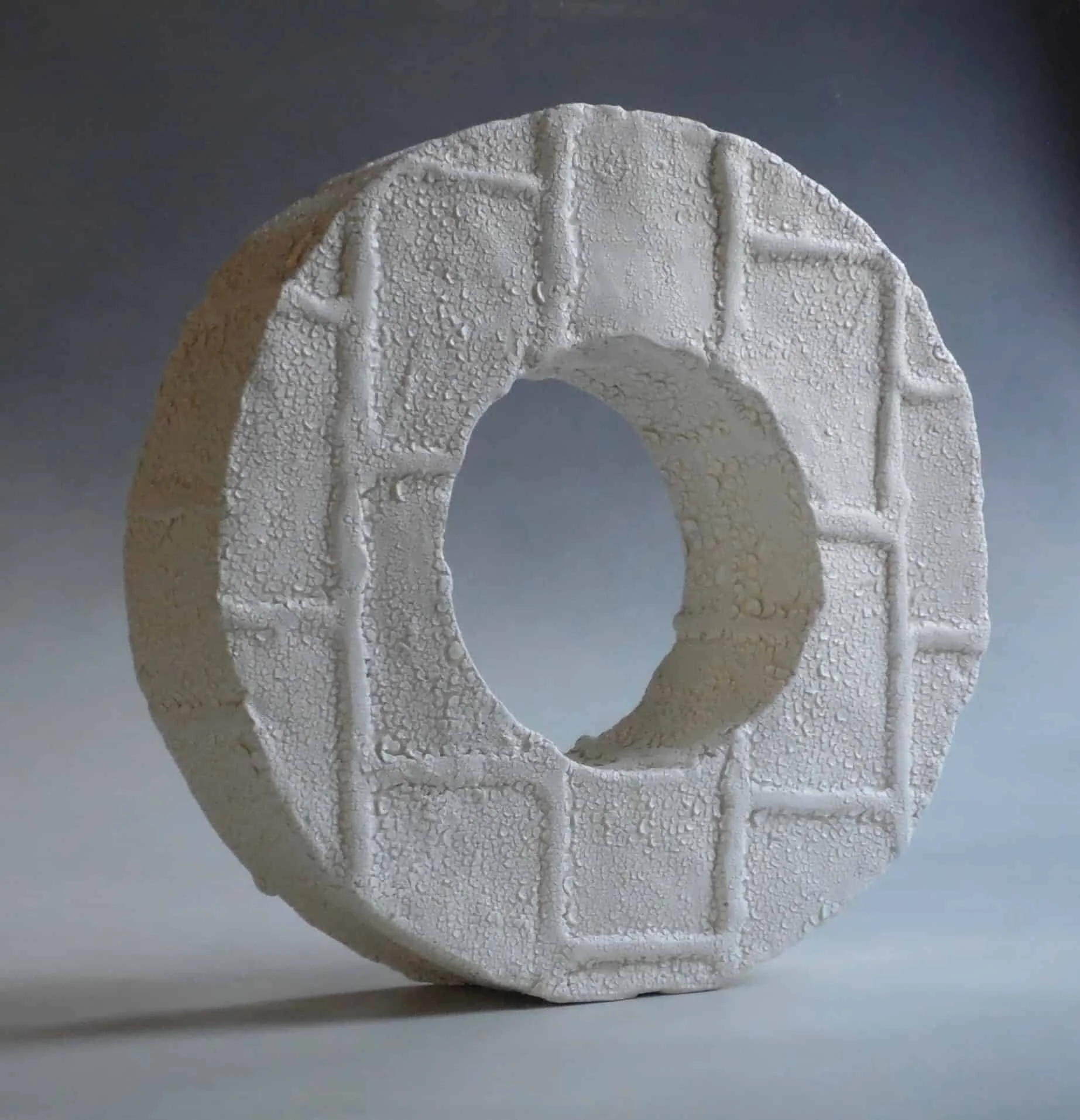 “My work is about shapes and forms and I like to keep it all as simple as I possibly can. Less is more. I have always enjoyed working with textured panels of clay and combining this with structural strength of curves and circles. I am inspired by the architectural concepts of support, span and connection.”