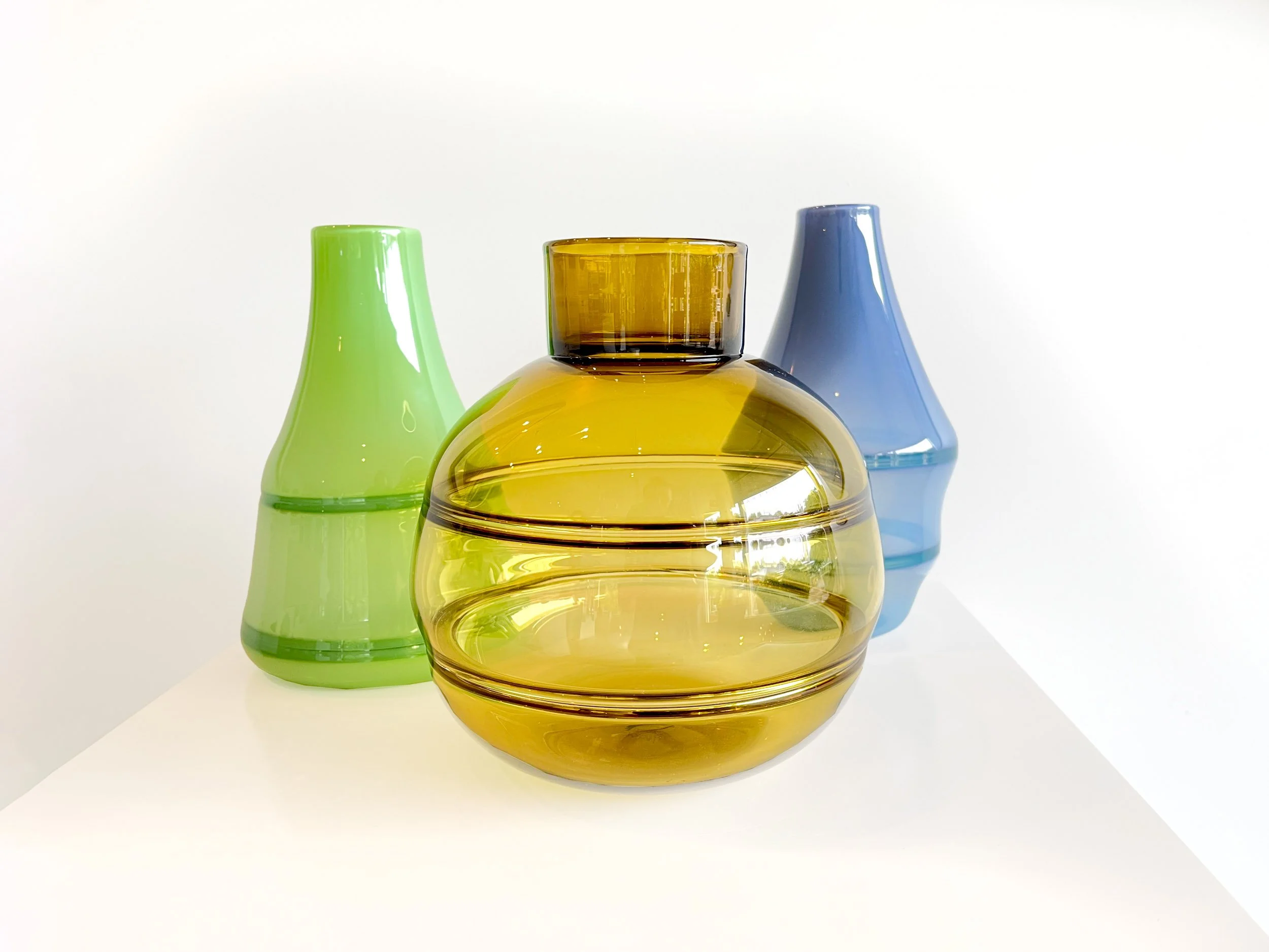Issac’s stunning art pieces are vibrant and minimal at the same time. Glowing in creative colourscapes that blend rich earthy tones with electric and pastel pallets these vessels delight the senses when viewed in a cluster - as well as when they stand individually, letting their full impact be showcased. ARTFORM.