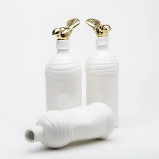 Julie Collis is a bundle of fun with impeccable style. She has the ability to tackle every day items, like a paper bag, and slip-cast it in white porcelain with a little message of both beauty and 're-use, recycle'. "Makes you think", she says! She makes us smile...a lot. ARTFORM