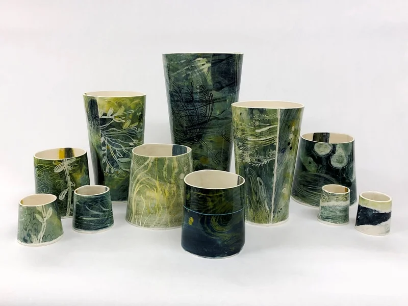 "My ceramic forms are of clean and simple design. I maximise the ceramic’s surface with my decorative illustrations and textured imagery. My ceramics are made from clay rolled to the desired thickness, then decorated with coloured slips or pressed into textured reliefs. It is finally assembled into vessels or more abstract pieces. I use stoneware clay glaze electric fired to 1160°C. "