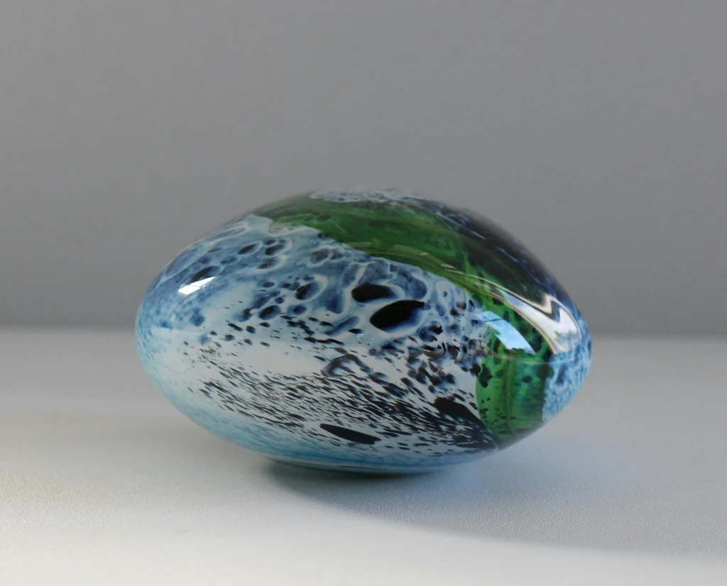 Lyndsay is by no means old, but he is an old master at blowing glass. He has been around for a while, as he started so young. This refined, yet gentle way of working with this unpredictable material is tangible, stunning and so timeless. His temperament can be seen in each piece, beautifully combining a multitude of techniques to present us with one masterpiece after the other. As well as the ever popular Riverstones, a Whangarei signature piece. ARTFORM.